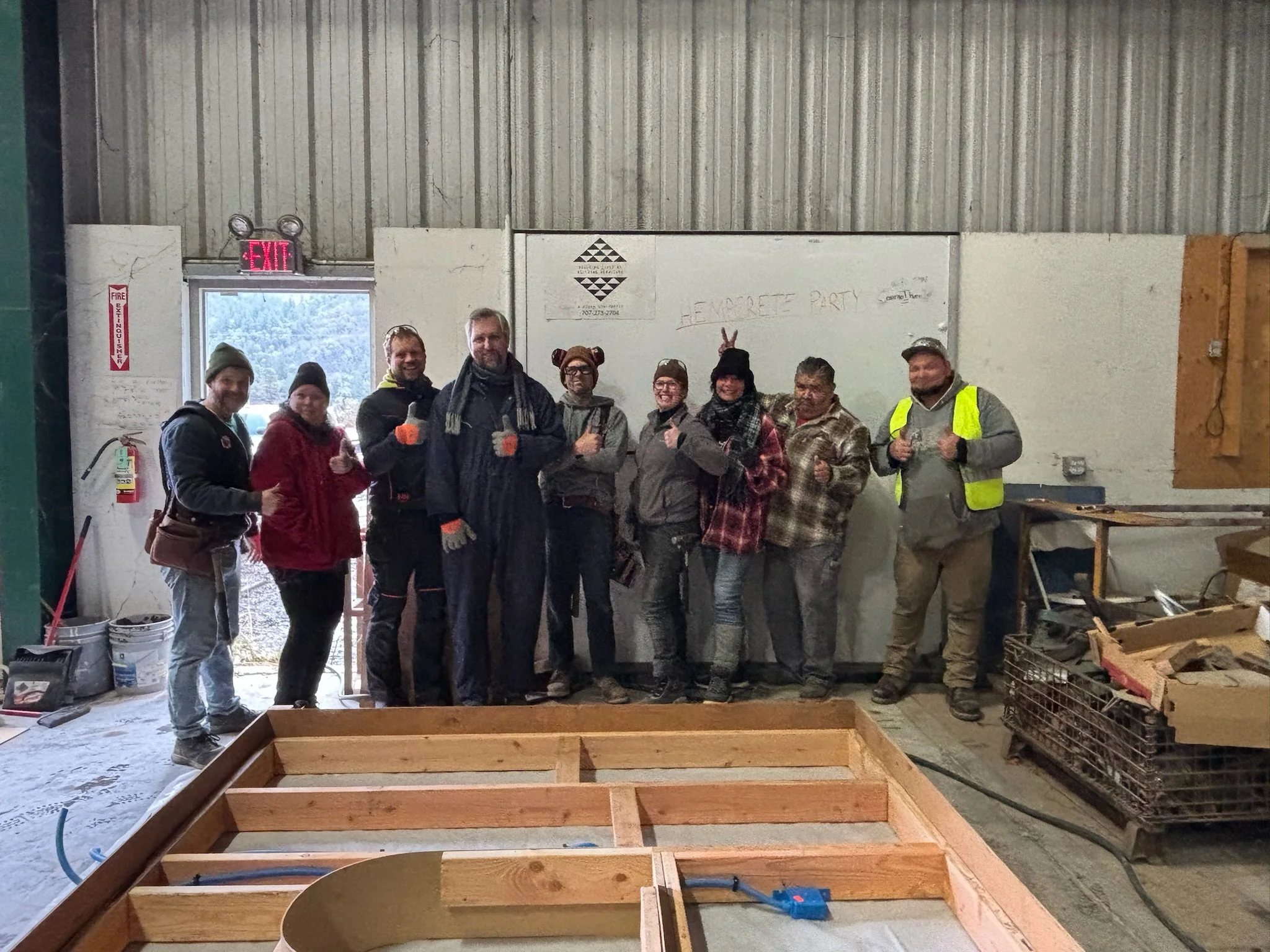 The heart of the project took shape at the Hoopa Modular Facility, where factory-built hempcrete panels were created through a collaborative effort led by Building Lives Building Structures (BLBS) and supported by the Indigenous Habitat Institute (IHI).