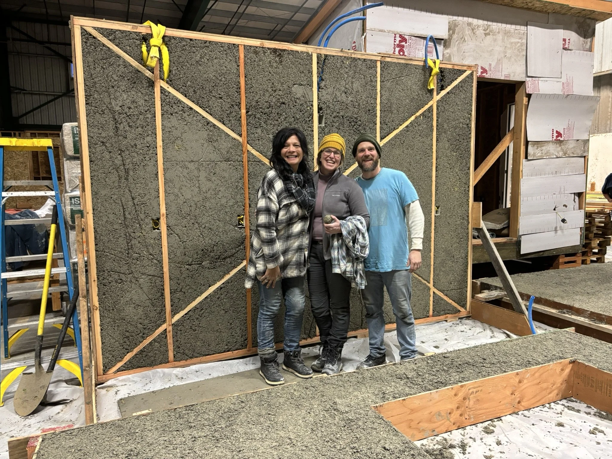 Over several weeks, volunteers, students from the College of the Redwoods Construction Technology Program, and local builders came together to frame, mix, pour, and lift dozens of hempcrete wall panels.