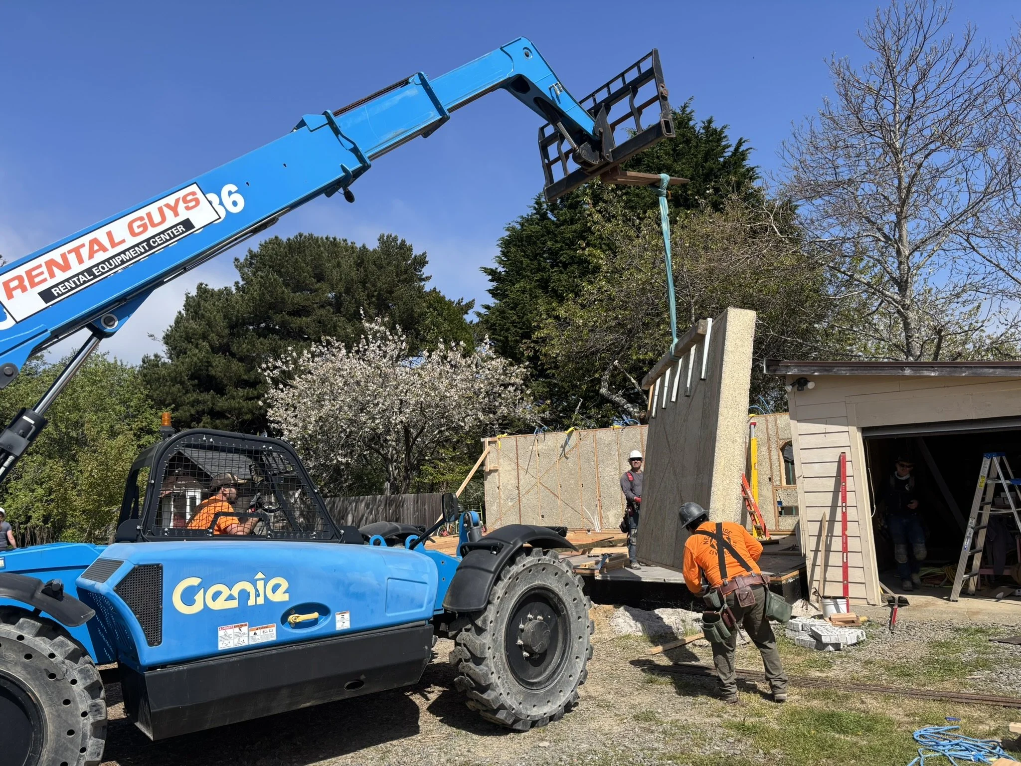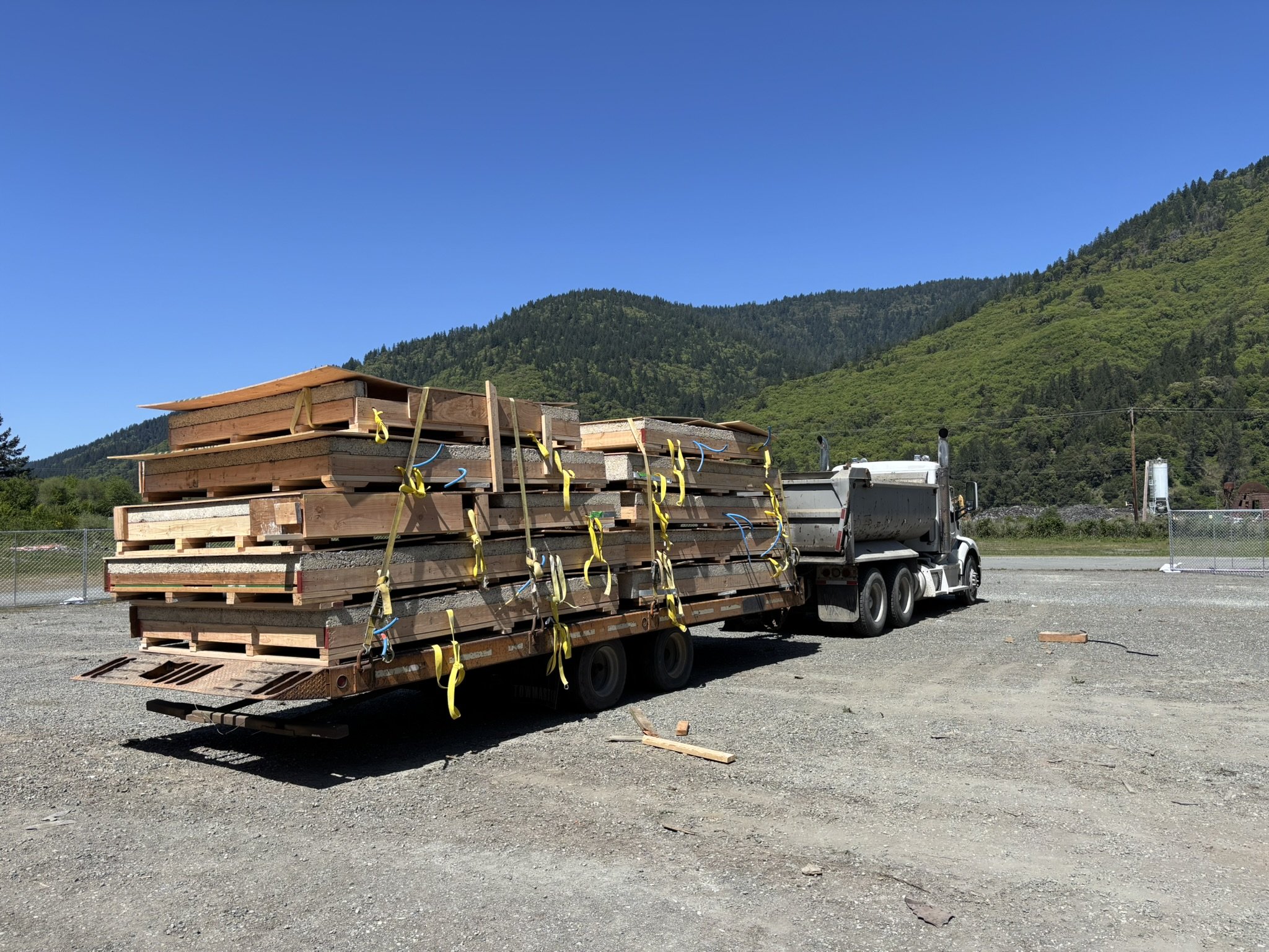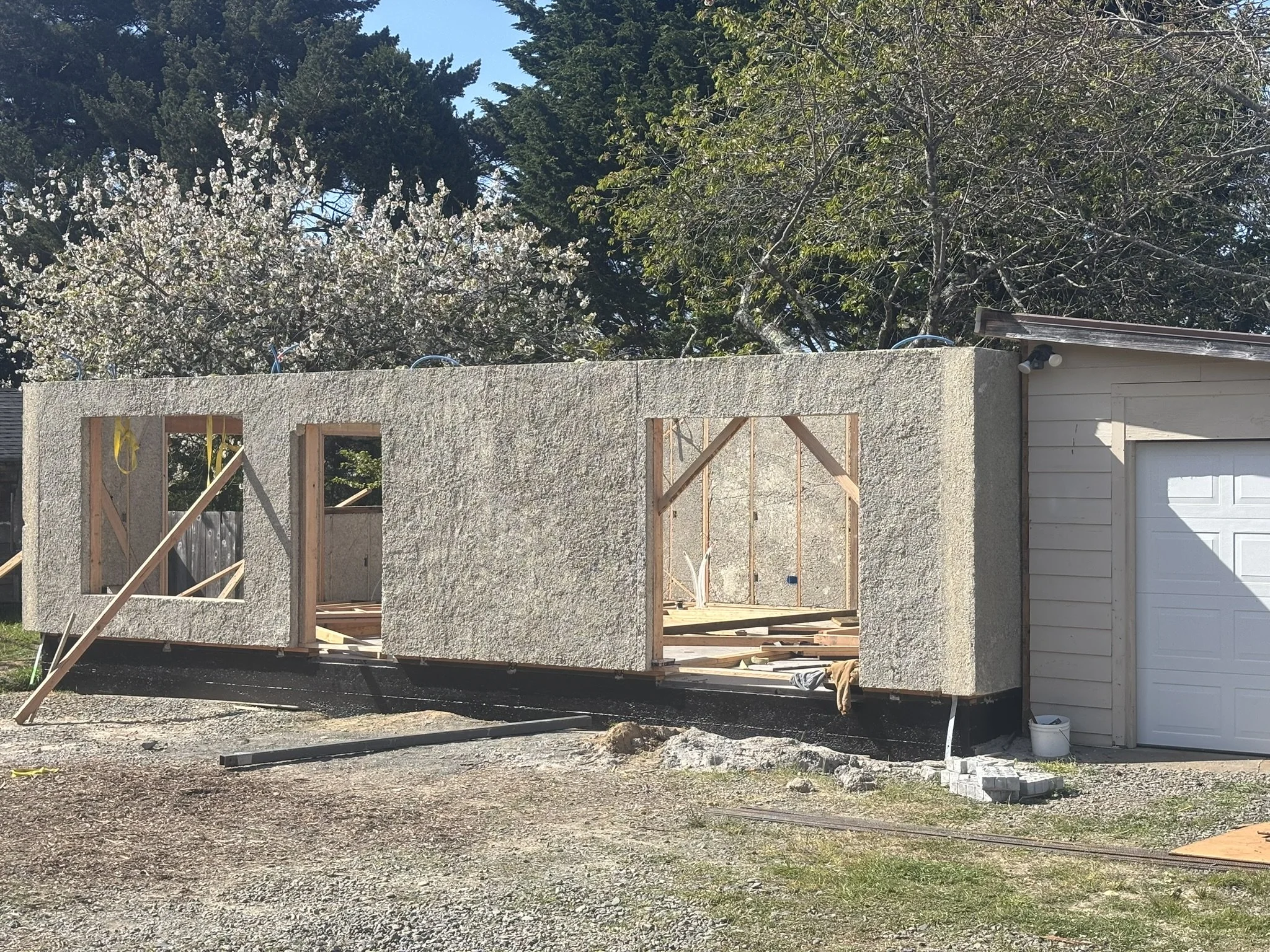 After curing in the factory, the 12-foot hempcrete panels were transported 60 miles through the redwoods by JZ Contracting and installed on site by Max Niehaus Construction with remarkable precision.